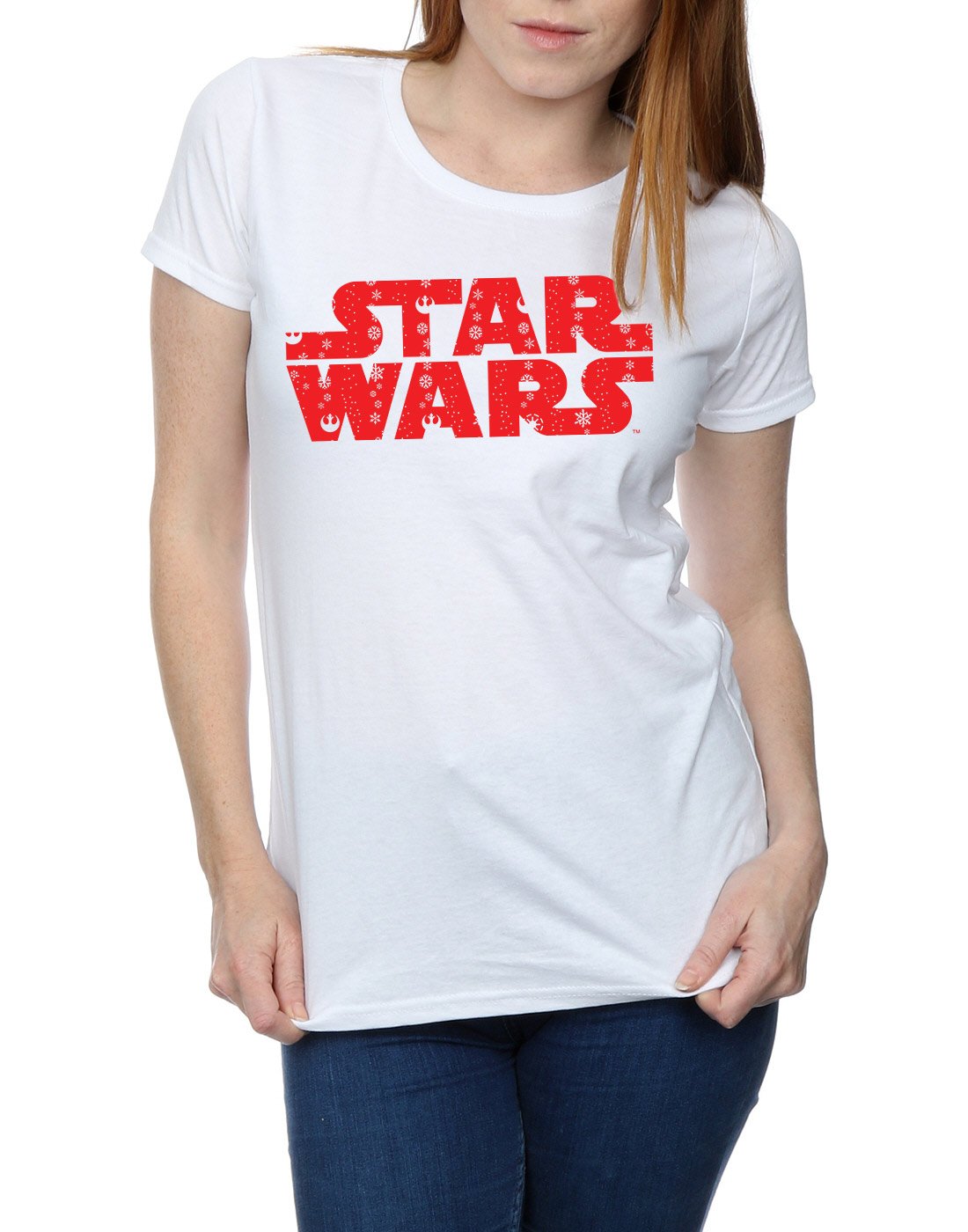 Star Wars Damen Christmas Logo T-Shirt X-Large Weiß
