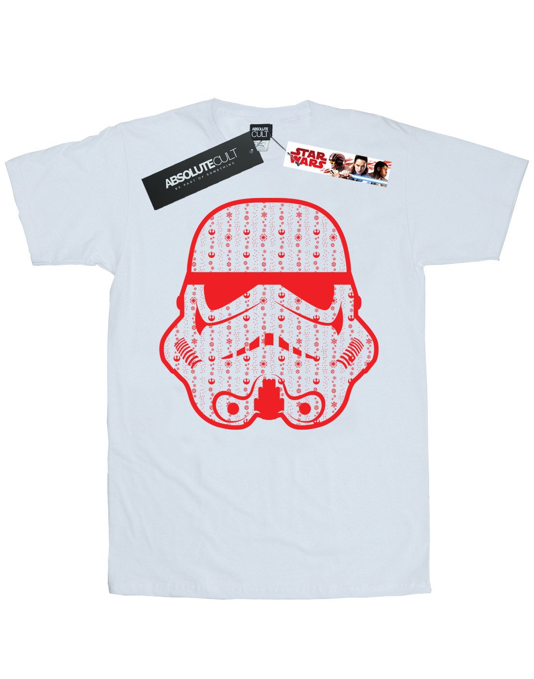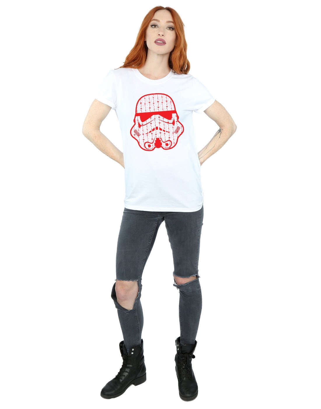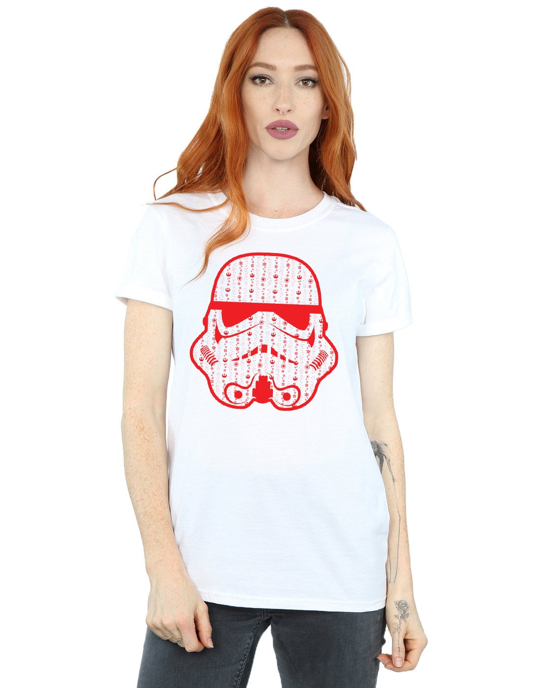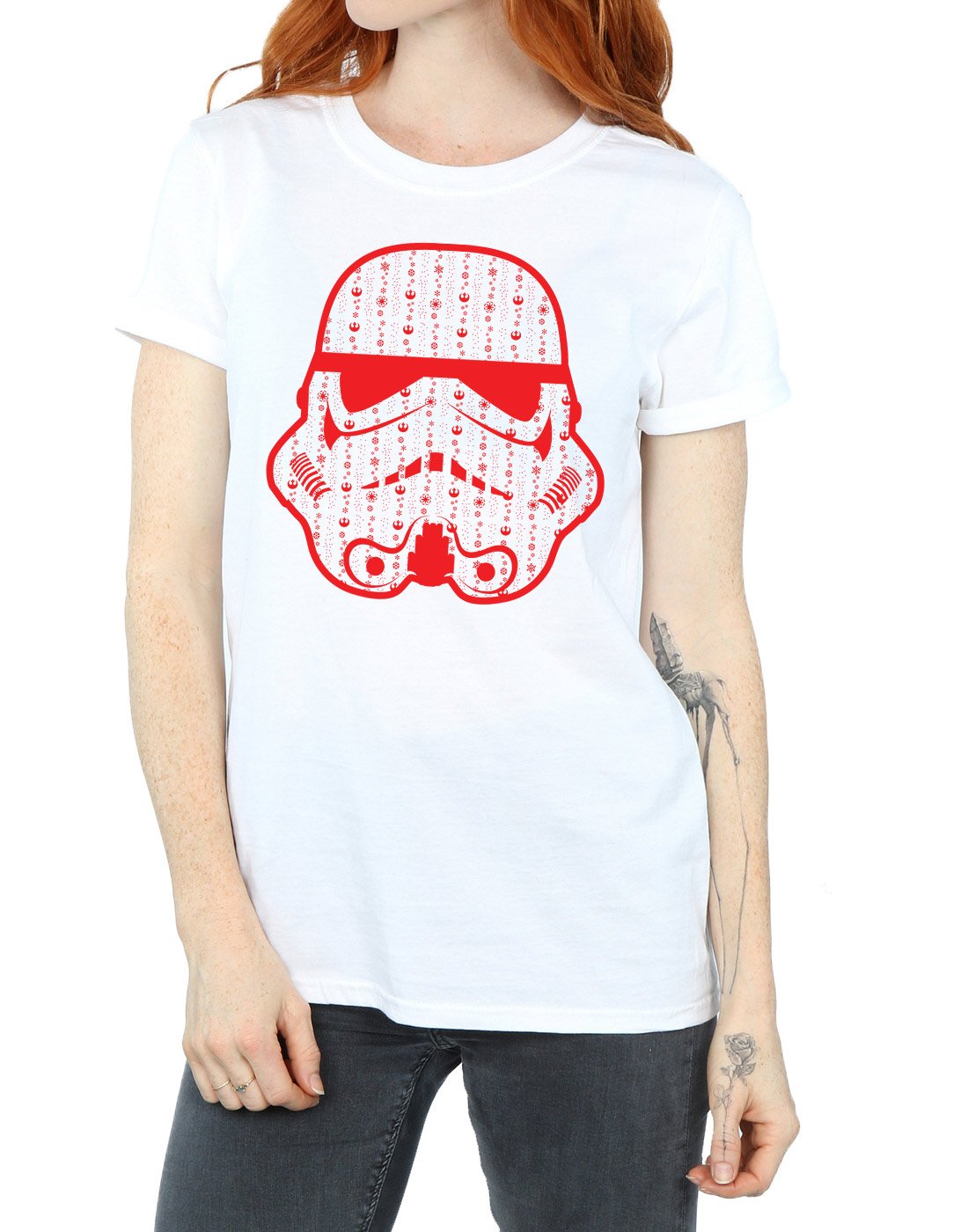 Star Wars Damen Christmas Stormtrooper Helmet Boyfriend Fit T-Shirt Small Weiß