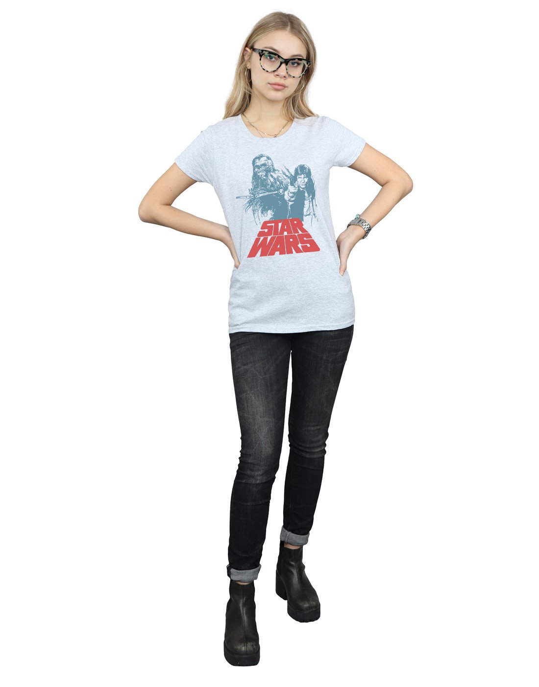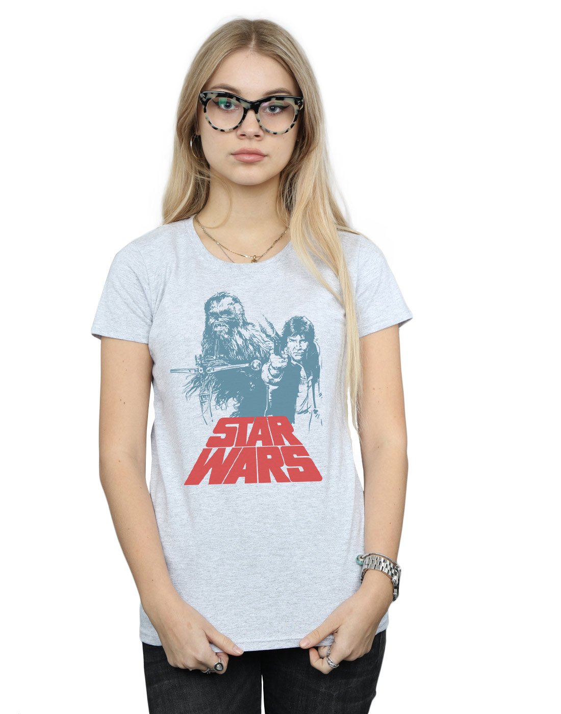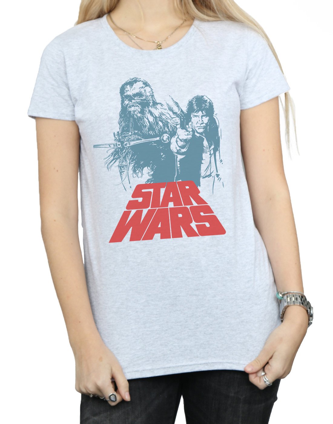 Star Wars Damen Han Solo Chewie Duet T-Shirt Sport Grau Large