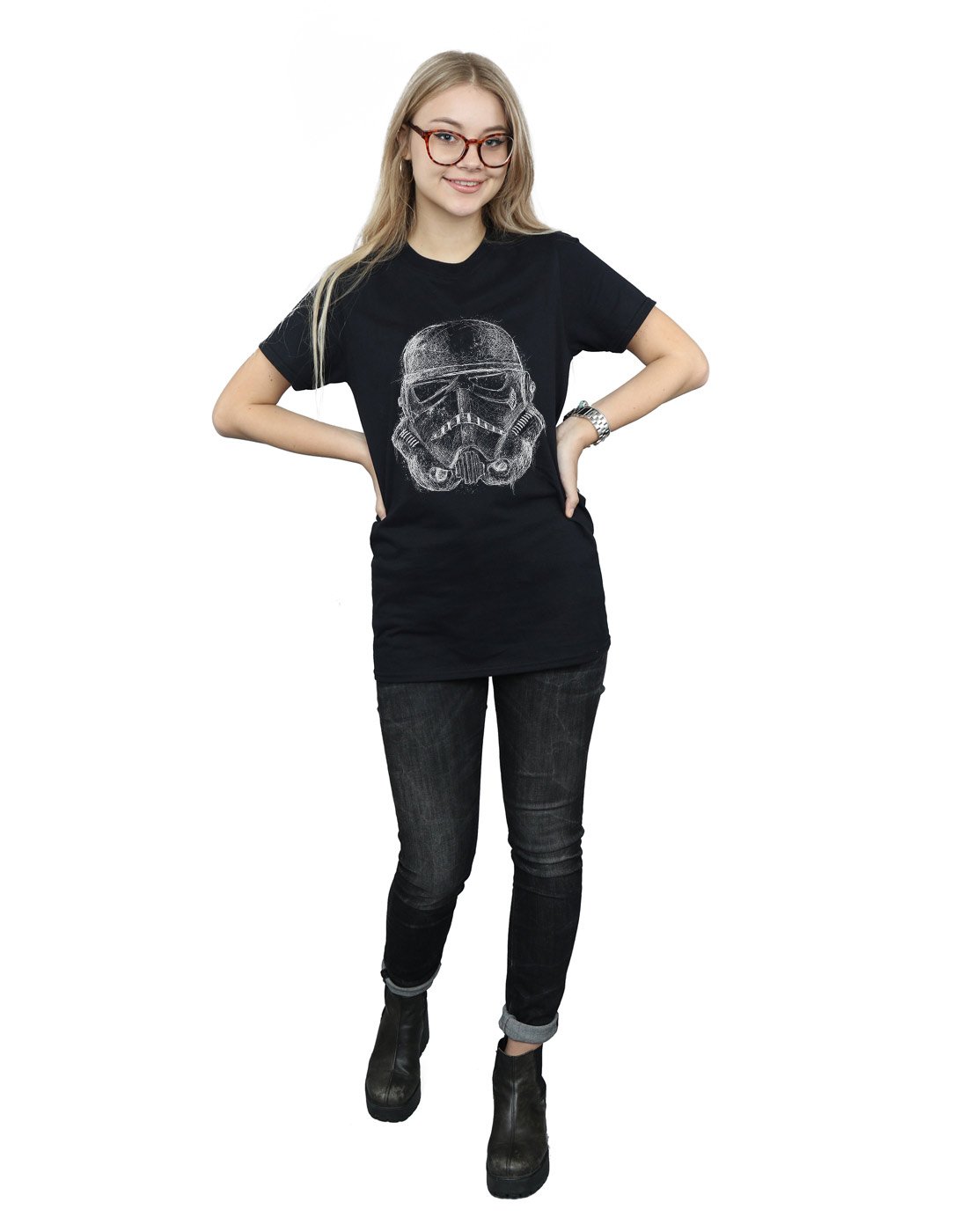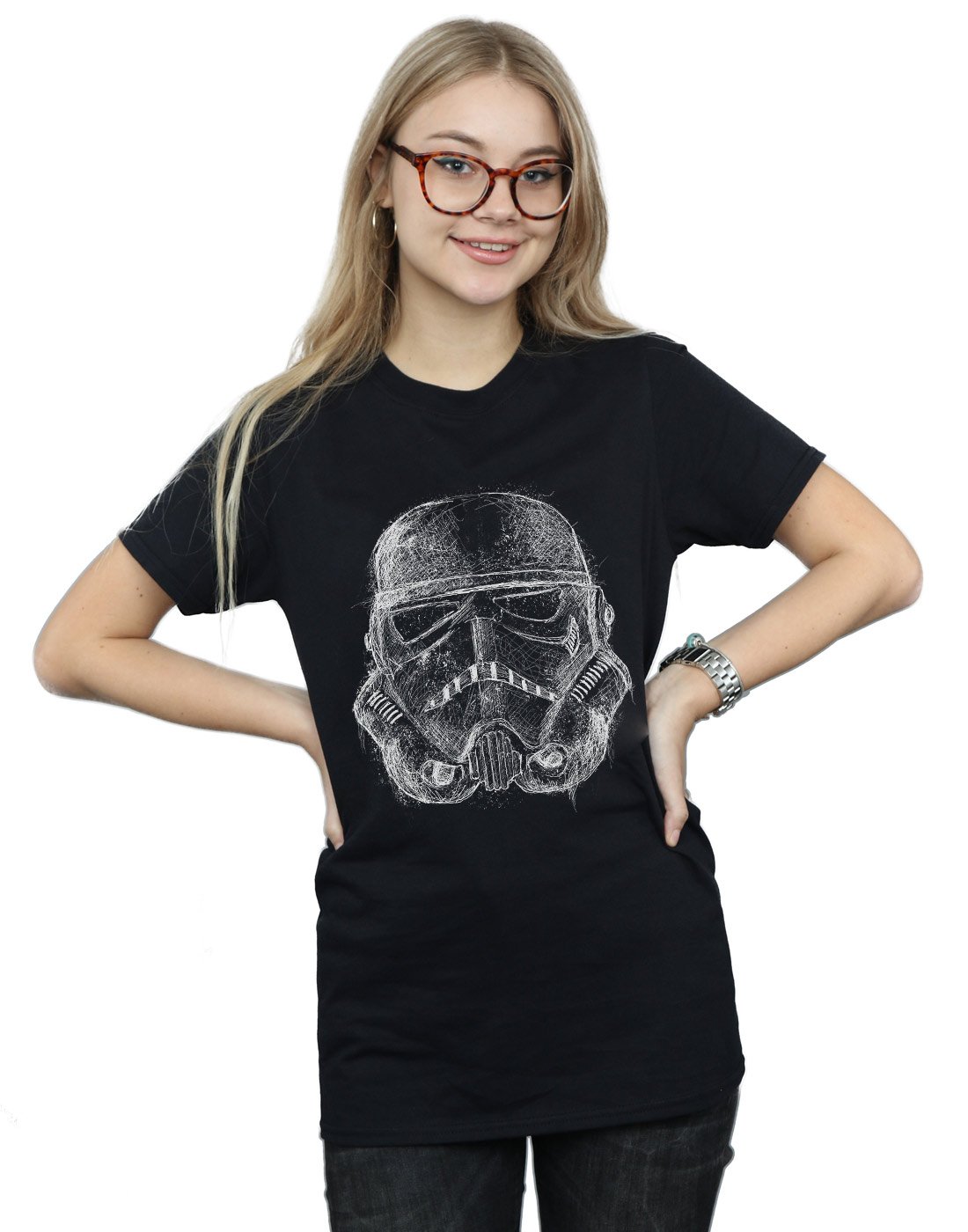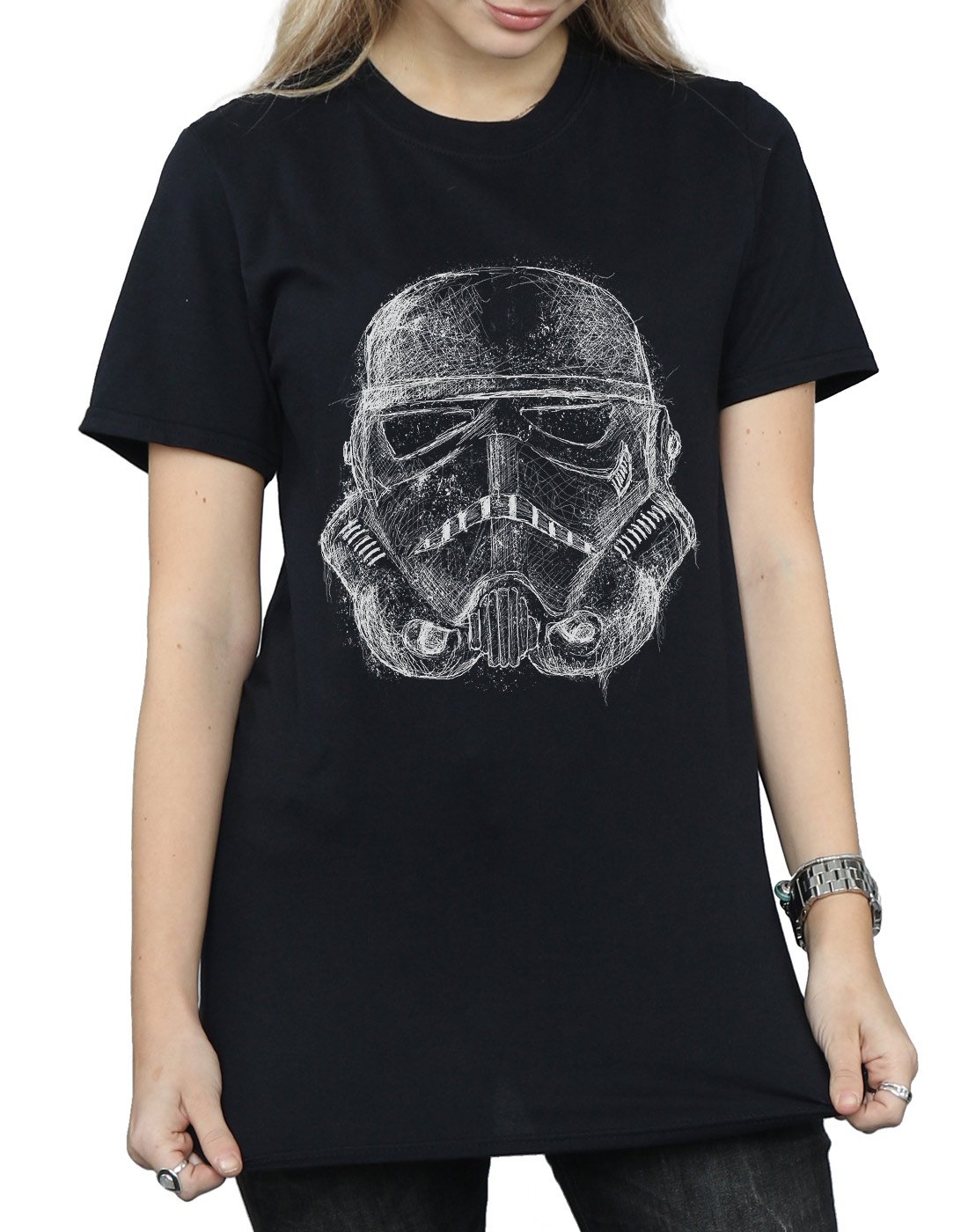 Star Wars Damen Stormtrooper Scribble Helmet Boyfriend Fit T-Shirt Schwarz Small