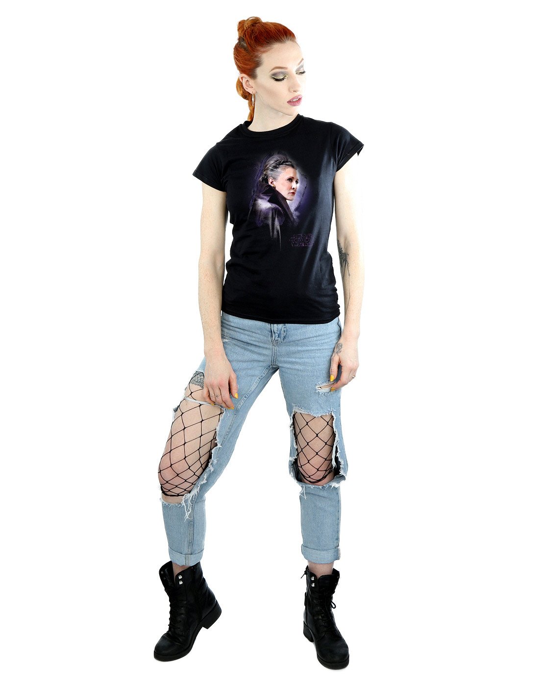 Star Wars Damen The Last Jedi Leia Brushed T-Shirt Medium Schwarz