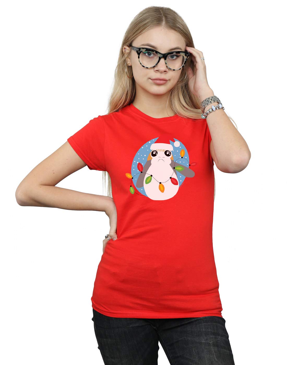 Star Wars Damen The Last Jedi PORG Christmas Lights T-Shirt Rot Medium