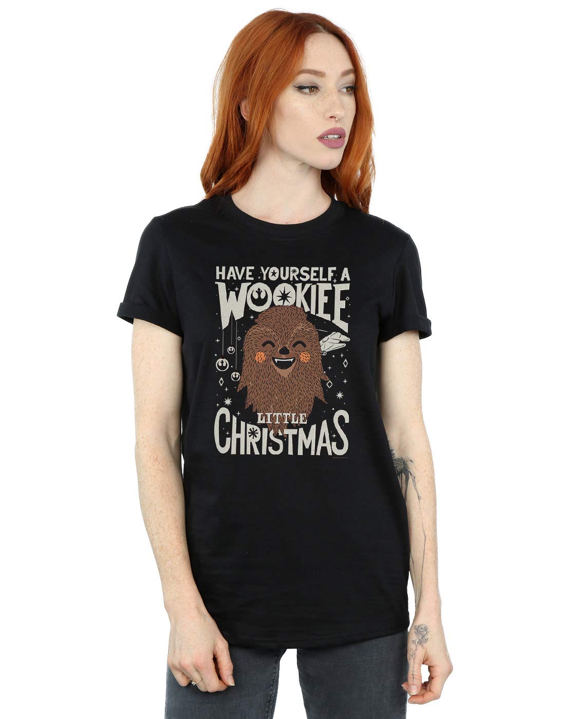 Star Wars Damen Wookiee Little Christmas Boyfriend Fit T-Shirt Schwarz Large