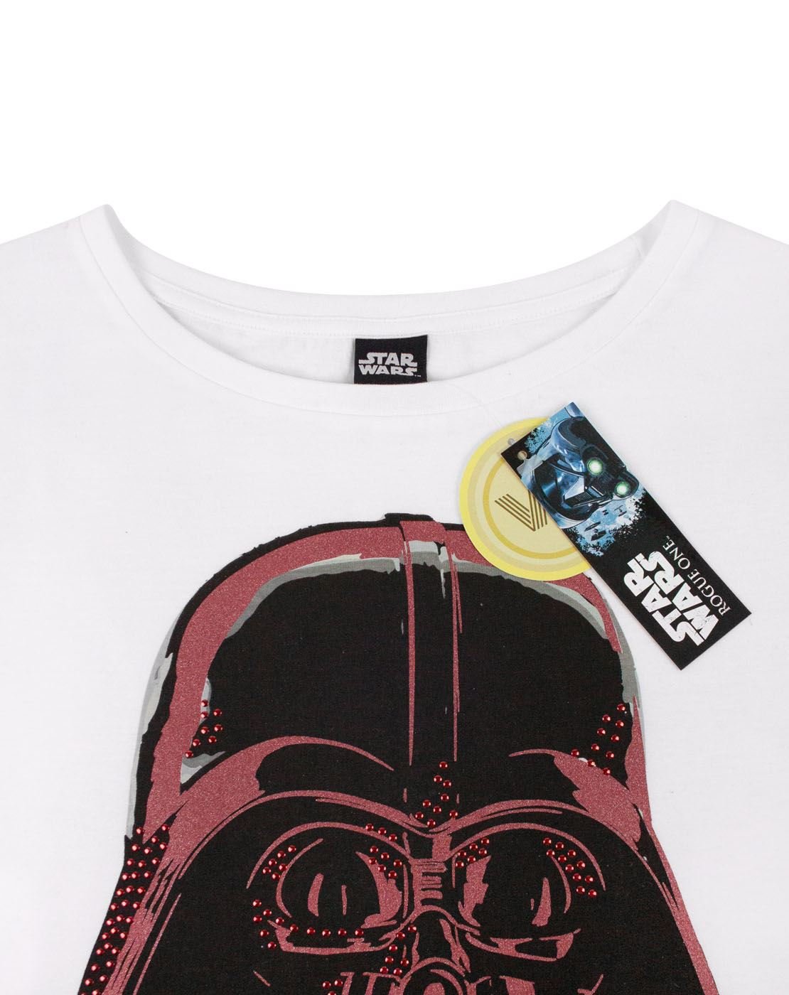 Offizielles Star-Wars-Top. Mit roten Schmucksteinen, Metallic-roten Streifen an den Ärmeln. 100% Baumwolle. Rundhalsausschnitt, lange Ärmel, hinten etwas länger.