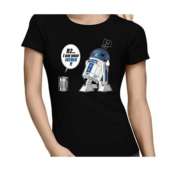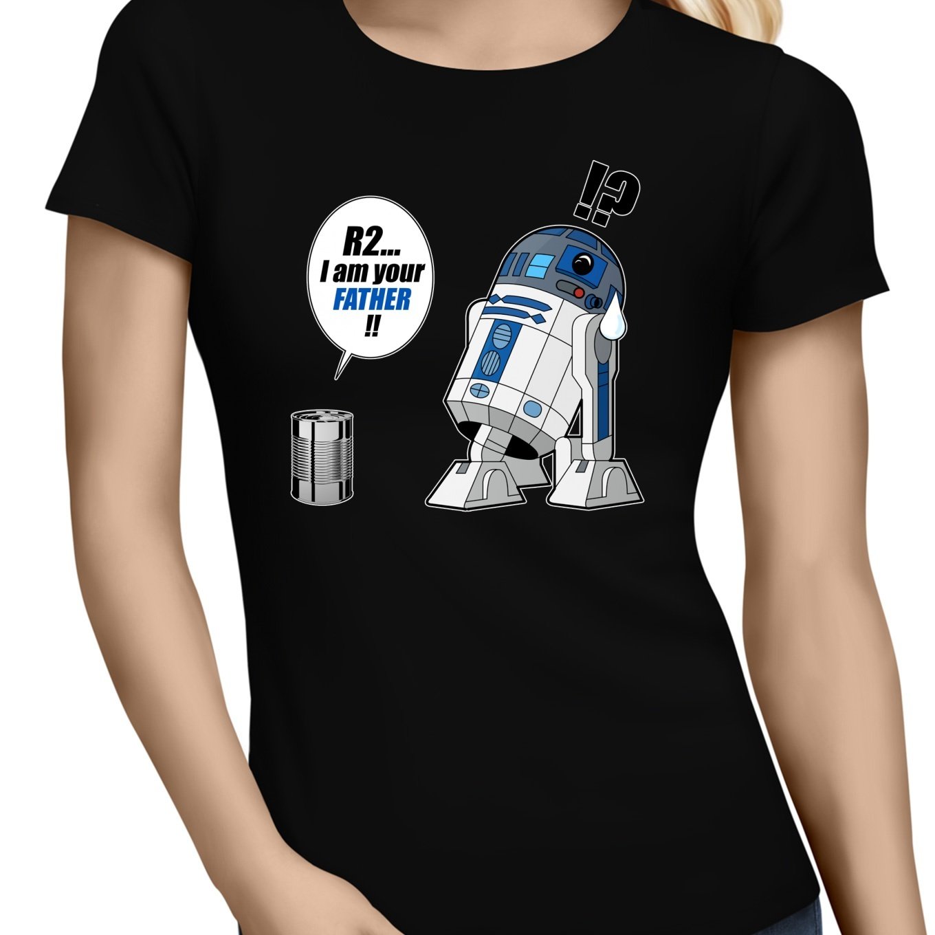 Erstklassiges Damen T-shirtvon Okiwoki (französischer Marke). Parodistisches Design, fun und sehr stilvolles mit R2-D2 – I am your father von Star Wars