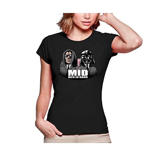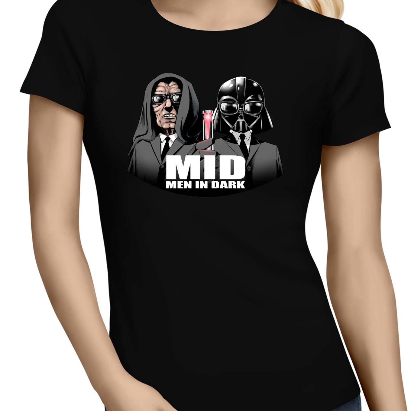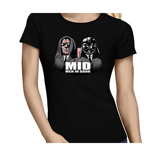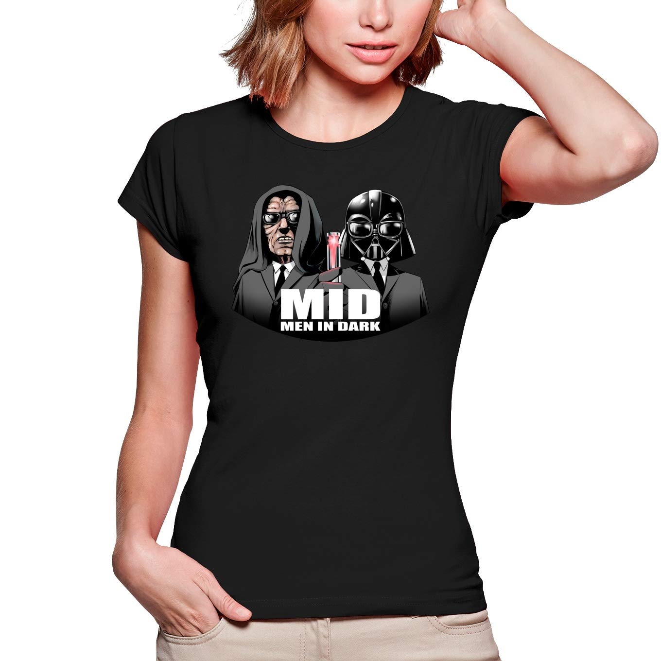 Star Wars – Men In Black Lustiges Schwarz Damen T-Shirt – Men In Black X Darth Vador und Palpatine (Star Wars – Men In Black Parodie) (Ref:911)