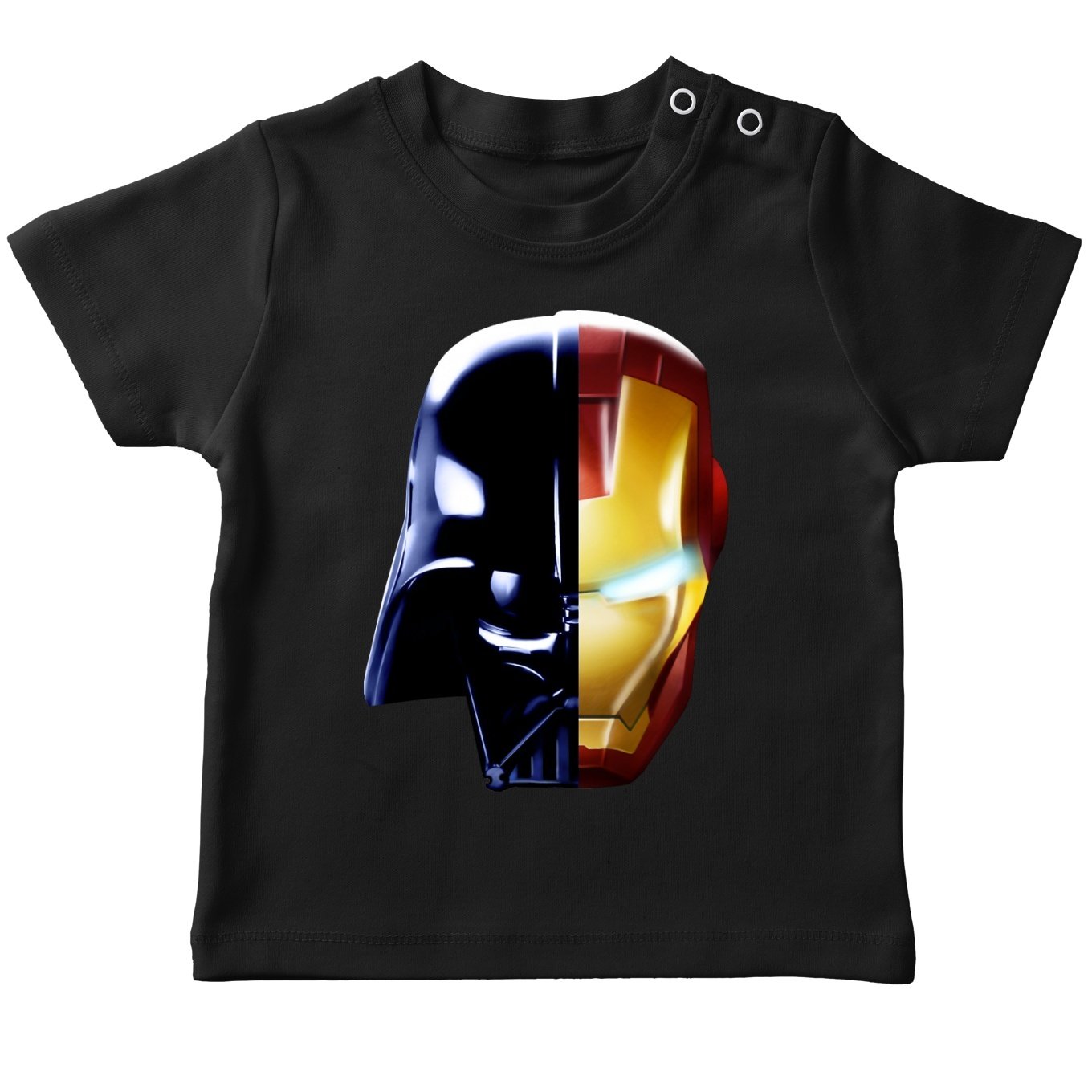 Erstklassiges Baby T-shirtvon Okiwoki (französischer Marke). Parodistisches Design, fun und sehr stilvolles mit Darth Vador, Iron Man und Daft Punk von Star Wars – Iron Man